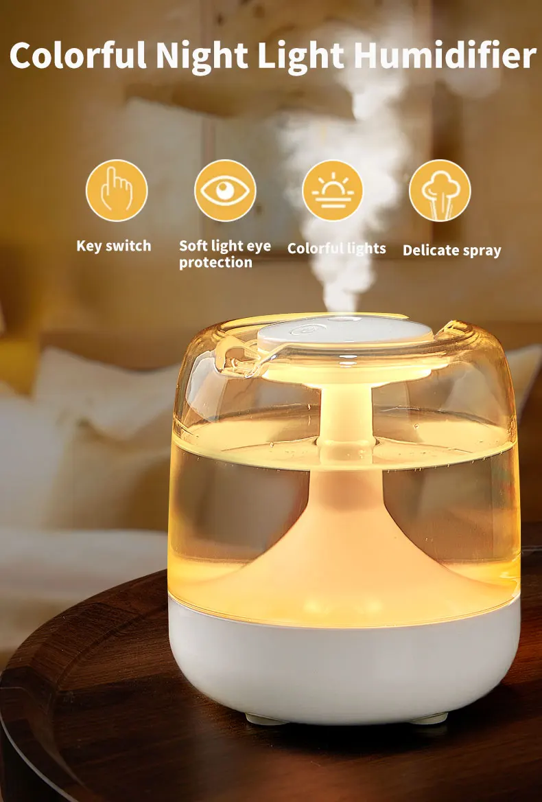 Air Humidifier Cute Ultrasonic Colorful Night Light Mini Humidifier Diffuser Transparent Portable Home Bedroom Aroma Diffuser