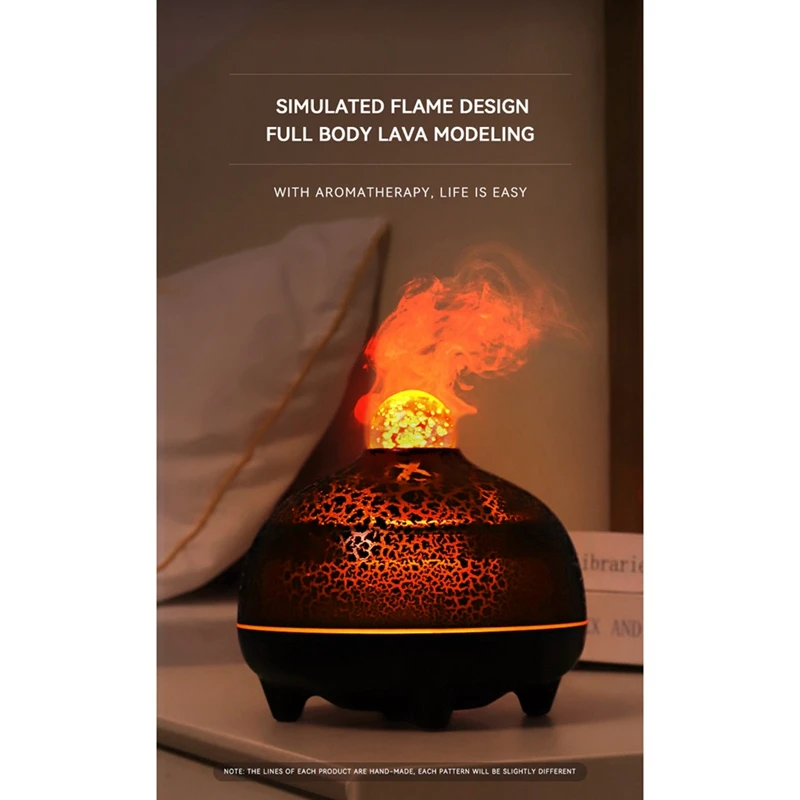 Flame Oil Diffuser: Using a volcano fire design, and with the ambient flame lighting so that the mist is like a real flame, the whole humidifier is like a burning volcano fire.adding a relaxed, soothing, calm atmosphere to your home, office, spa or more.