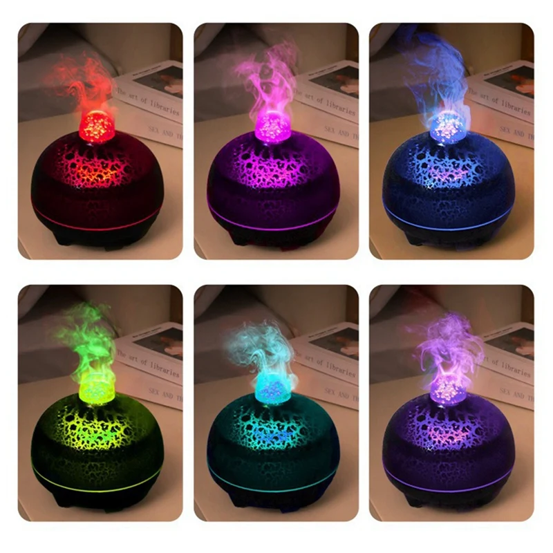 Essential Oil Diffuser Volcano Fire Diffuser Humidifier 350Ml Cool Mist Humidifier 7 Colors Light For Room Office