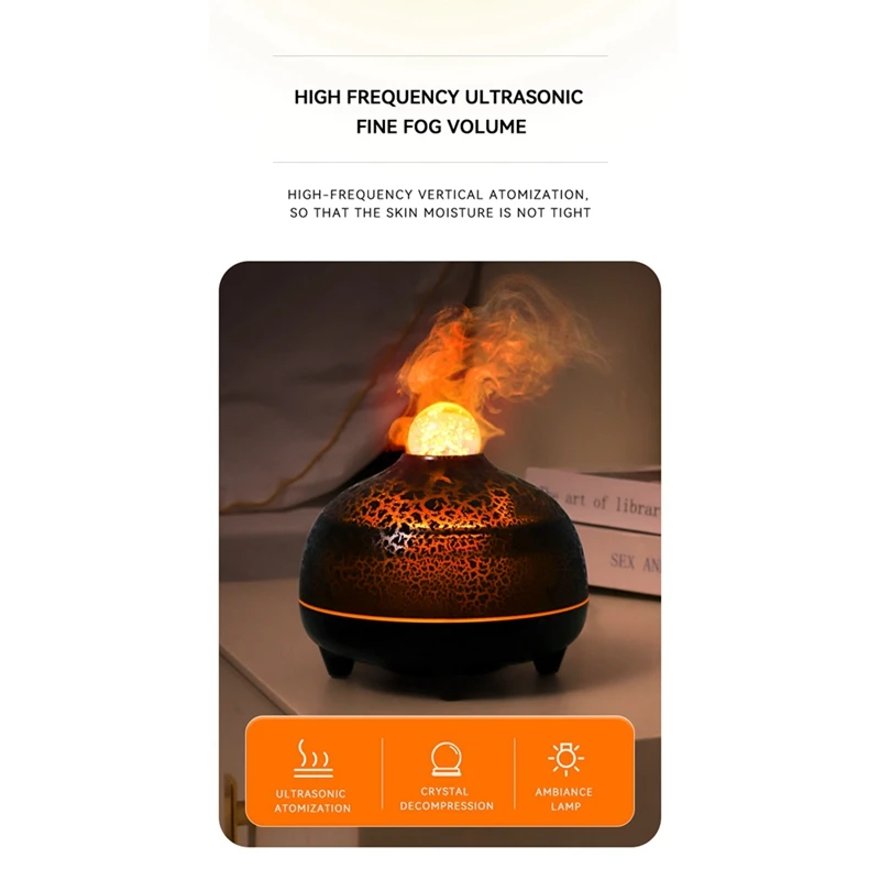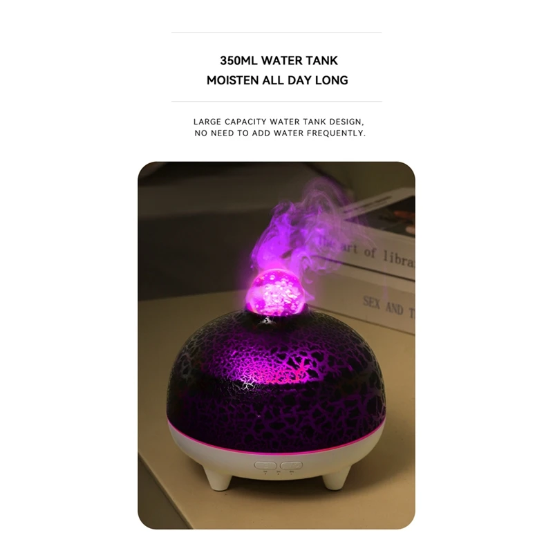 Suit for Any Scene: Designed to be like a volcano fire, our aroma humidifier suit for home, office, a large room yoga, a bedroom, and a gym.